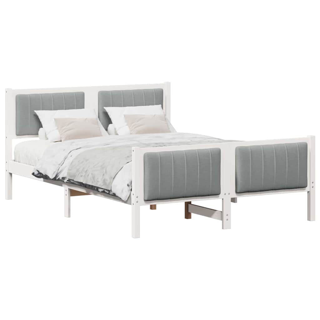 vidaXL Bettgestell Weiß und Hellgrau 140 x 190 cm Massivholz Kiefer