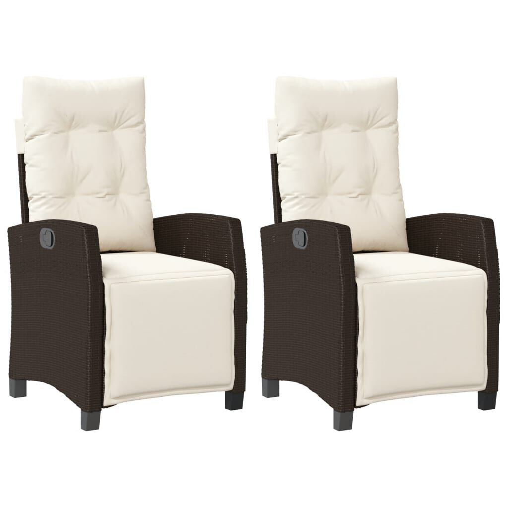 vidaXL Gartensessel mit Fußteil 2 Stk. Verstellbar Braun Poly Rattan