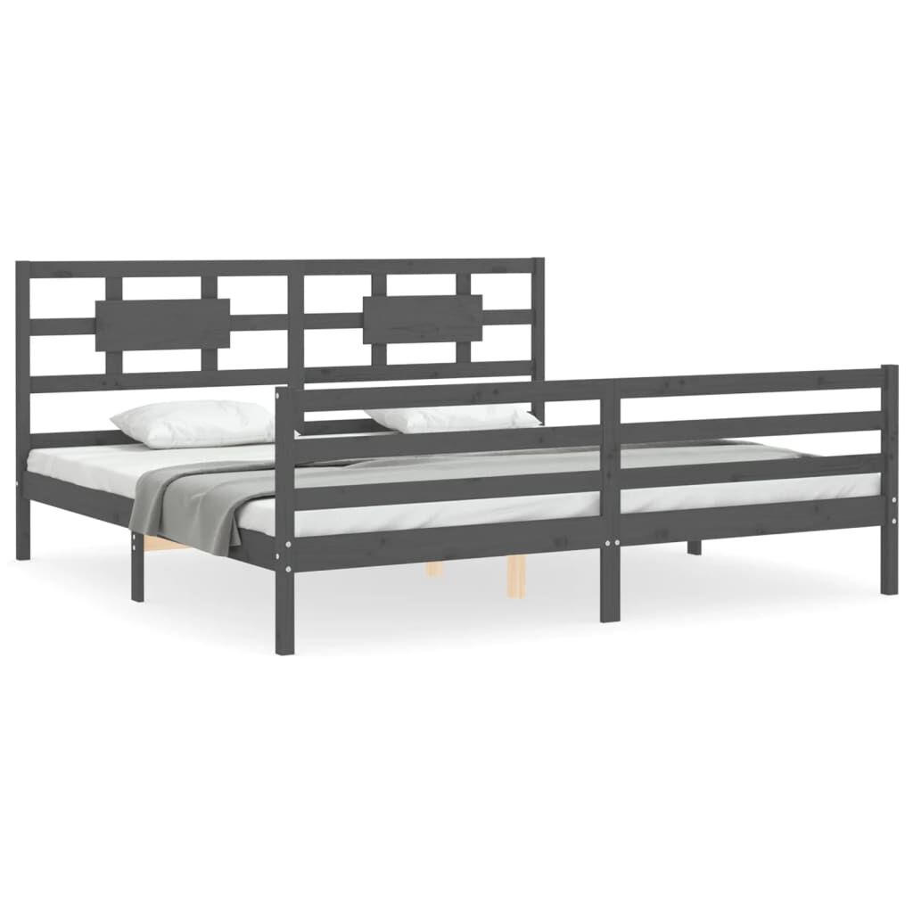vidaXL Massivholzbett mit Kopfteil Grau 200x200 cm