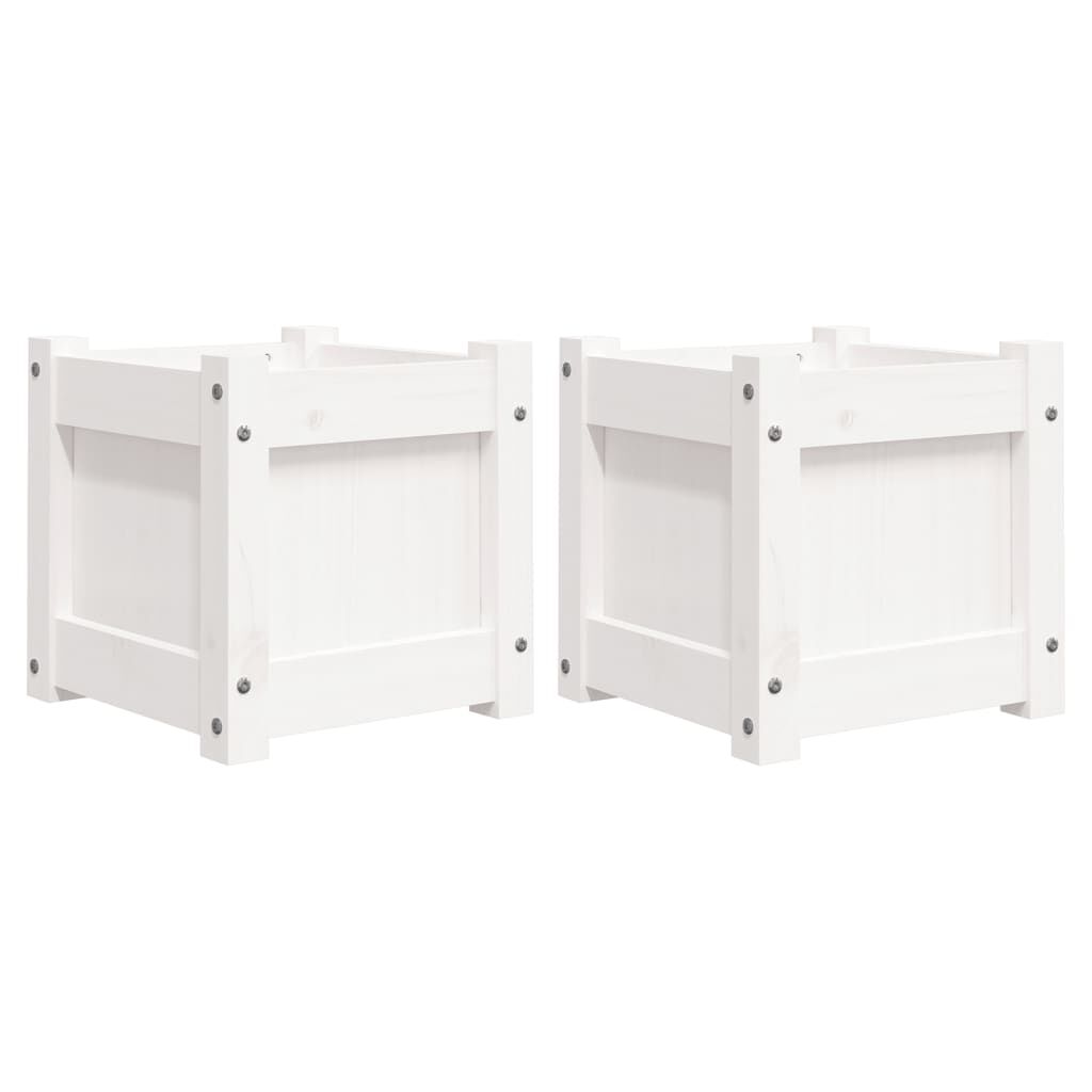 vidaXL Pflanzkübel 2 Stk. Weiß Massivholz Kiefer