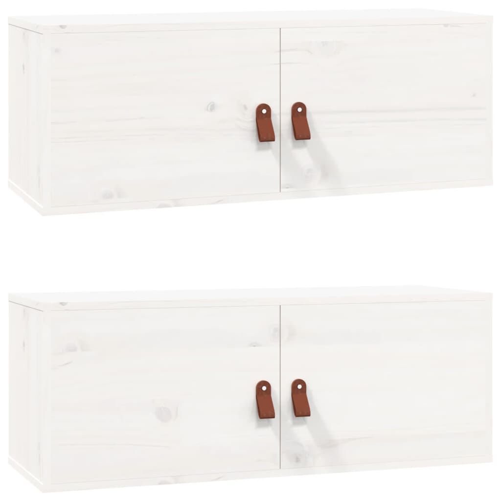 vidaXL Wandschränke 2 Stk. Weiß 80x30x30 cm Massivholz Kiefer